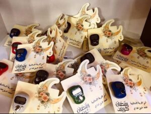 • سجادة صلاة إلكترونية، أو عادية، وكذلك سبحة مربوطة مع قطعة حلوى أو بطاقة تهنئة بحلول شهر الخير.
