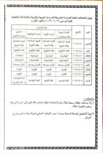 أعلنت وزارة التربية والتعليم العراقية عن. موعد امتحانات الصف الثالث المتوسط النهائية الدور الاول للعام 2022-2023. وقد أعلنت الوزارة عن جدول الامتحانات النهائية للصفوف المنتهية. حيث يعد جدول الامتحانات من الأدوات الهامة التي يعتمد عليها الطالب. حيث من خلاله يستطيع الطالب ان يستعد للامتحانات الوزارية. بتنظيم وقته للمذاكرة للحصول على أعلى الدرجات.